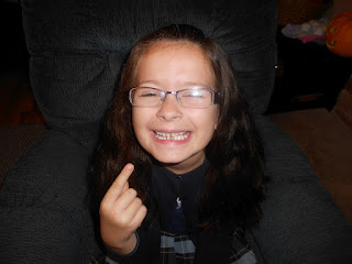 She has a hard time keeping her eyes open when we take her picture so that is why her eyes are partly closed.....She is very proud that she lost a tooth - PLUS, the tooth fairy brought her $1.50 in her tooth pillow to add to her piggy bank. Yay Samantha!